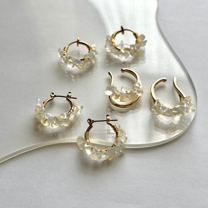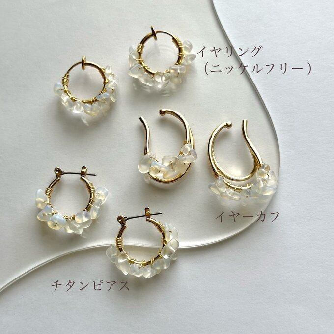 ホワイトオパール 【 チタンピアス ★ イヤリング ★ イヤーカフ 】