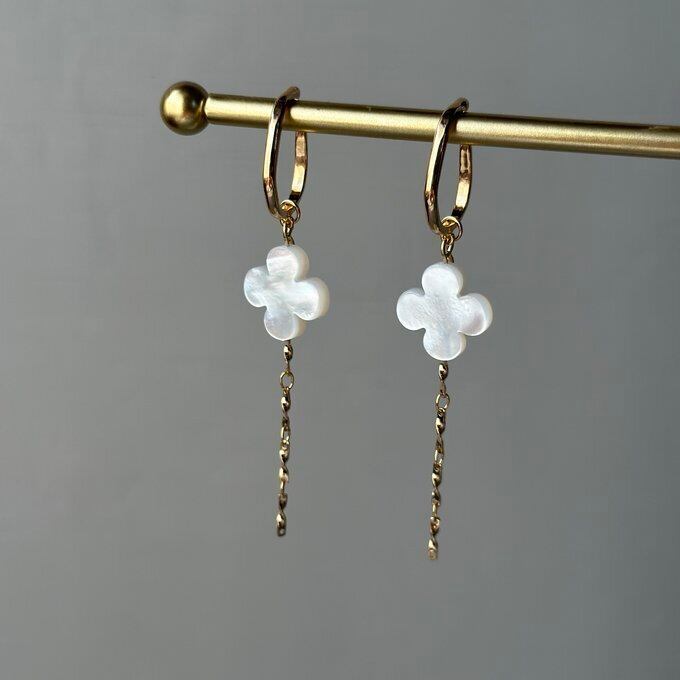 イヤーカフ マザーオブパール クローバー2way(両耳用)