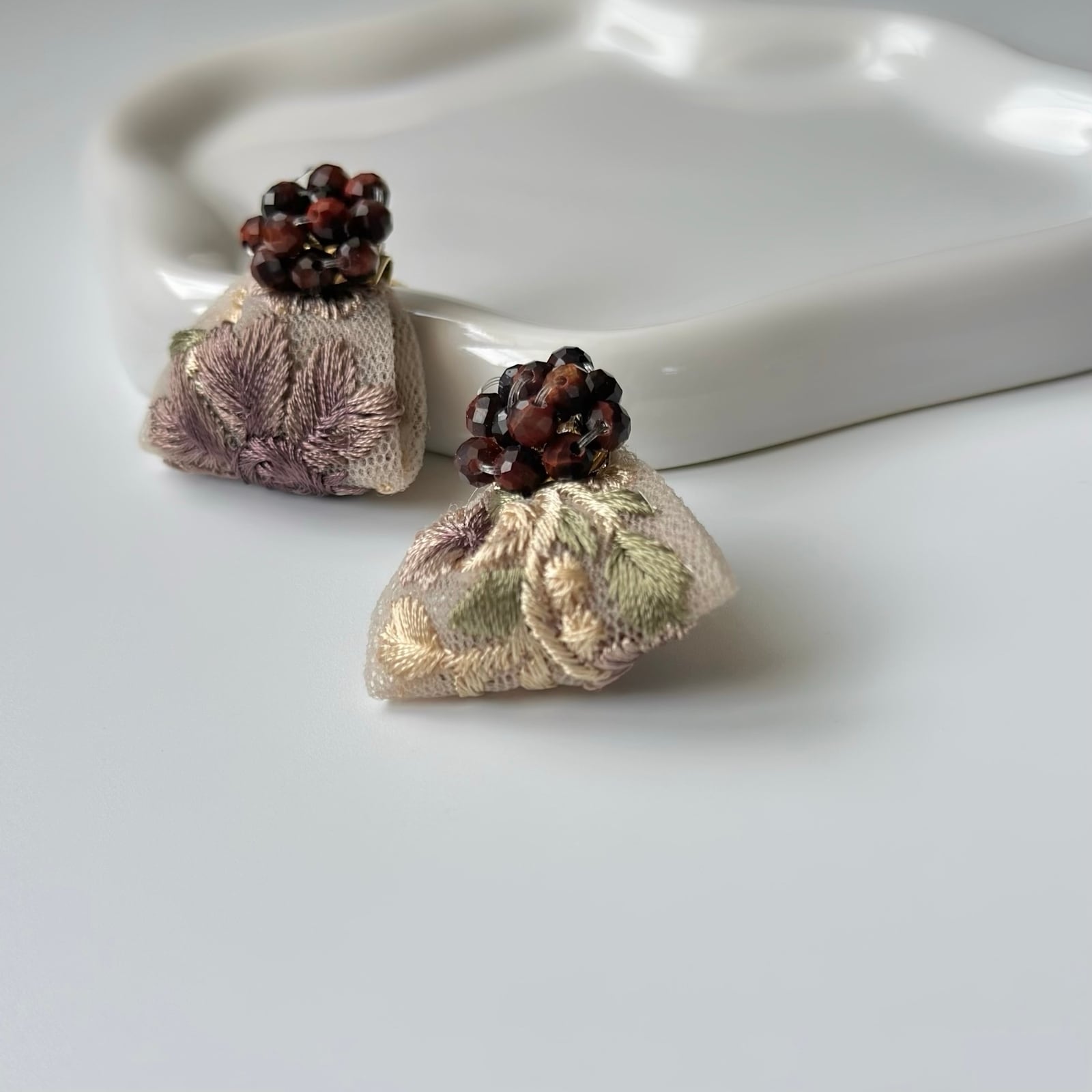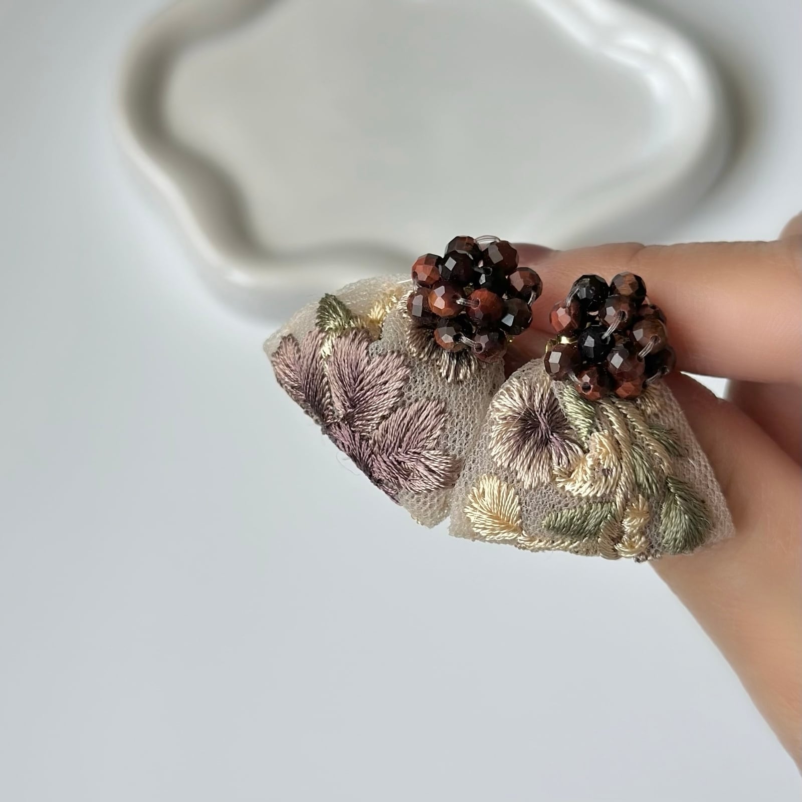 繊細なインド刺繍リボンを重ねて。